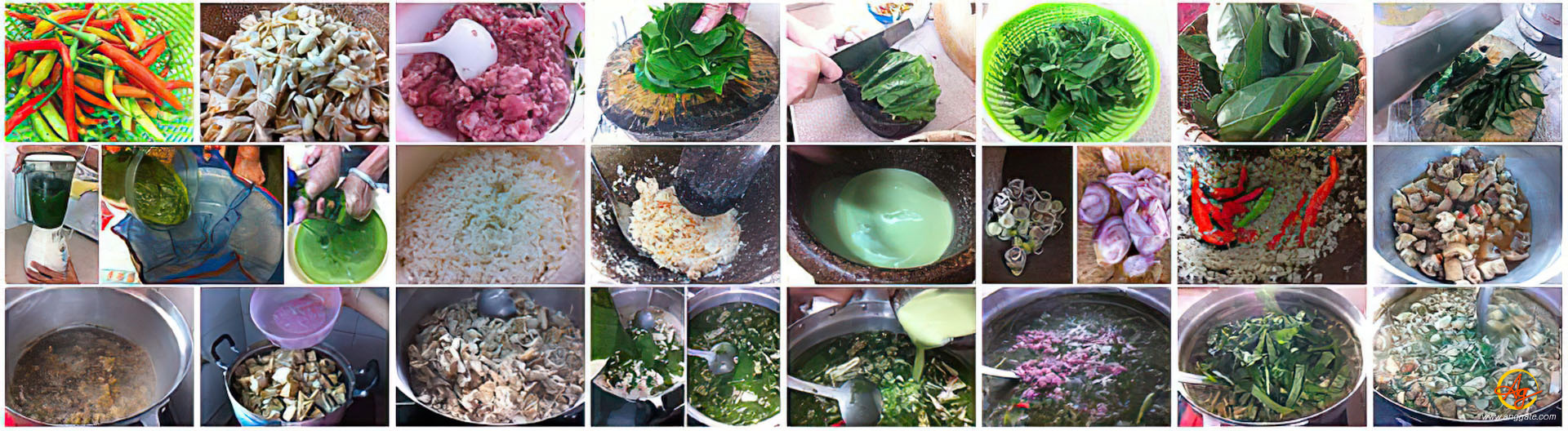 13. ยกขึ้นตั้งไฟต่อ ใช้ทัพพีคนไว้ไม่ให้แป้งข้าวติดก้นหม้อ พอน้ำแกงเริ่มเดือด เอาหมูสับใส่ลงไป คนให้ละลายเข้ากับน้ำแกง (ถ้าน้ำแกงเริ่มเหนียว หมายถึง แป้งข้าวสุกแล้ว) จากนั้นชิมรสตามชอบ ถ้ารสจืดไปให้เติมน้ำปลา ปรุงรสตามชอบ