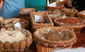 ส่วนผสมที่นำมาใช้ในการทำธูปหอมที่บ้านทองตะนาว เป็นพวกผลิตภัณฑ์จากธรรมชาติล้วนๆ วิทยากรบอกว่า ไม่มีสารเคมี เช่น ดอกไม้แห้ง เปลือกไม้ รากไม้ ที่มีกลิ่นหอม ก็แยกกลิ่นกันไป ซังข้าวโพดเอามาบดหยาบ บดละเอียด ทำธูปขาวก่อนที่จะใส่สี ผสมกลิ่น ?? สีสดที่เราเห็น เขาใช้สีผสมอาหารในการทำ จึงปลอดภัยแน่นอน ก้านธูปเหลามาจากไม้ไผ่ และการประกอบก้านธูปก็จะใช้กาวจากธรรมชาติ กาวที่มาจากยางไม้ บดละเอียด เรียกว่า "ผงโกบ๊วะ" (คือยางไม้ที่มาจากต้นกันเกรา) ... จำได้ไม่หมด ถ่ายรูปย่อยๆ มาก็ไม่ครบ แต่เล่าเอาบรรยากาศแล้วกันนะคะ