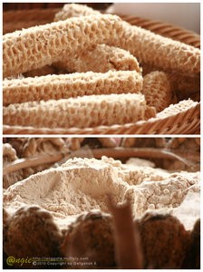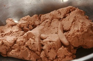 ใช้ซังข้าวโพดบดละเอียด 2 ส่วน กับผงโกบ๊วะ 1 ส่วน เทรวมกันในกะละมัง ค่อยๆ ผสมน้ำ ใช้มือนวดไปเรื่อยๆ จนเหนียวเหมือนดินน้ำมัน แล้วก็ใส่กลิ่น (คือใส่น้ำมันหอมระเหย) ปริมาณคร่าวๆ ก็ประมาณ 1-2 ฝา ต่อ 1 กิโลกรัม